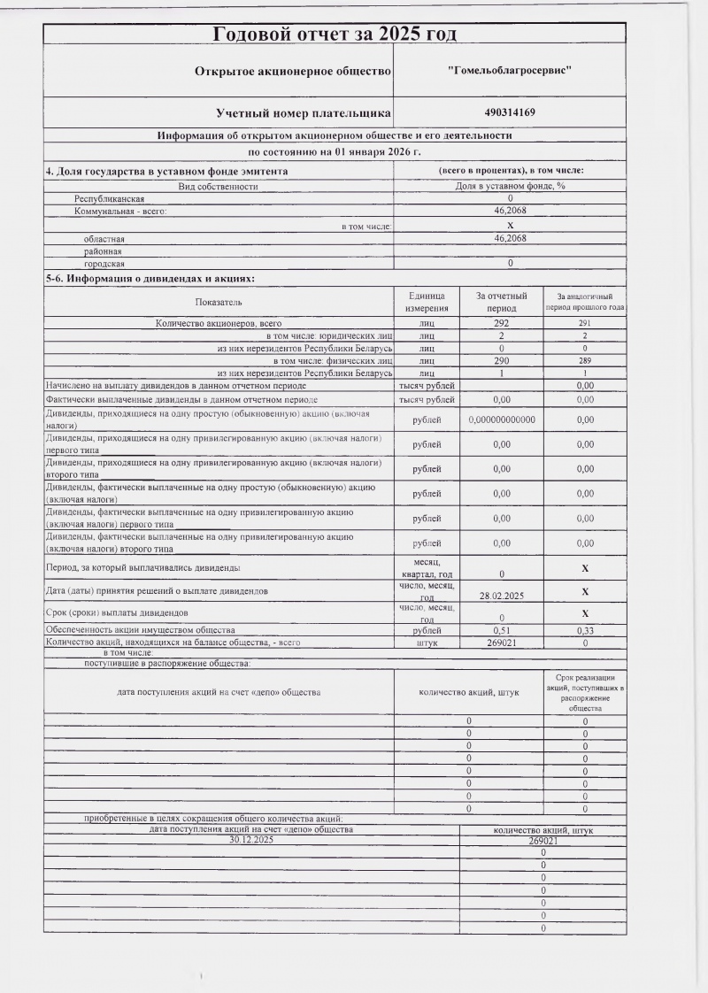 Годовой отчет ОАО "Гомельоблагросервис" за 2025г. ( скачать PDF- файл )