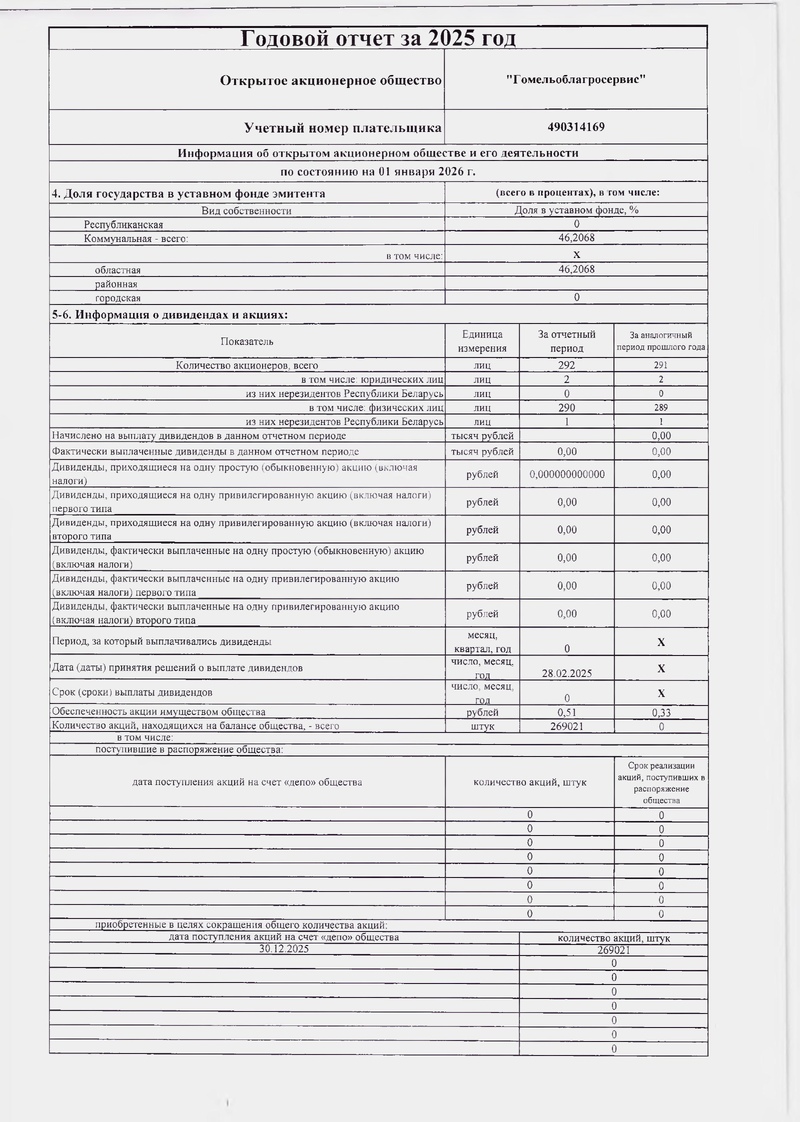 Годовой отчет ОАО "Гомельоблагросервис" за 2025г. ( скачать PDF- файл )