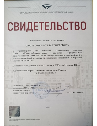 За время работы ОАО «Гомельоблагросервис» зарекомендовало себя надежным партнером, всегда готовым предложить взаимовыгодное решение задач, поставленных Заказчиком.